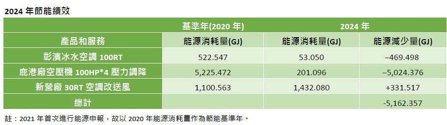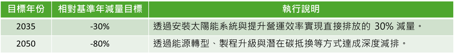 綜合檢視2024年未達成目標的主因,主要為產能增加,導致整體用電量上升。然而,值得注意的是,整體能源密集度呈現下降趨勢,顯示能源使用效率已有明顯改善。未來將以全方位資源有效分配與利用為核心策略,並規劃以「較前一年度碳排放量減少1%」作為年度目標,持續朝向資源最佳化與永續發展邁進。